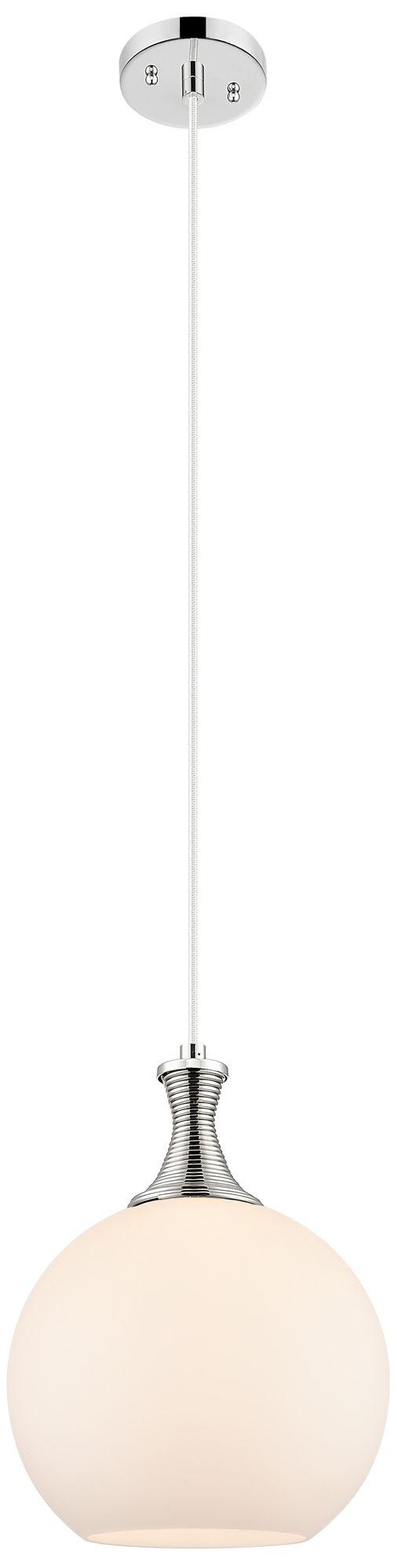 Astor 12"W Polished Nickel Metal Stem Mini Pendant w/ Matte White Shade