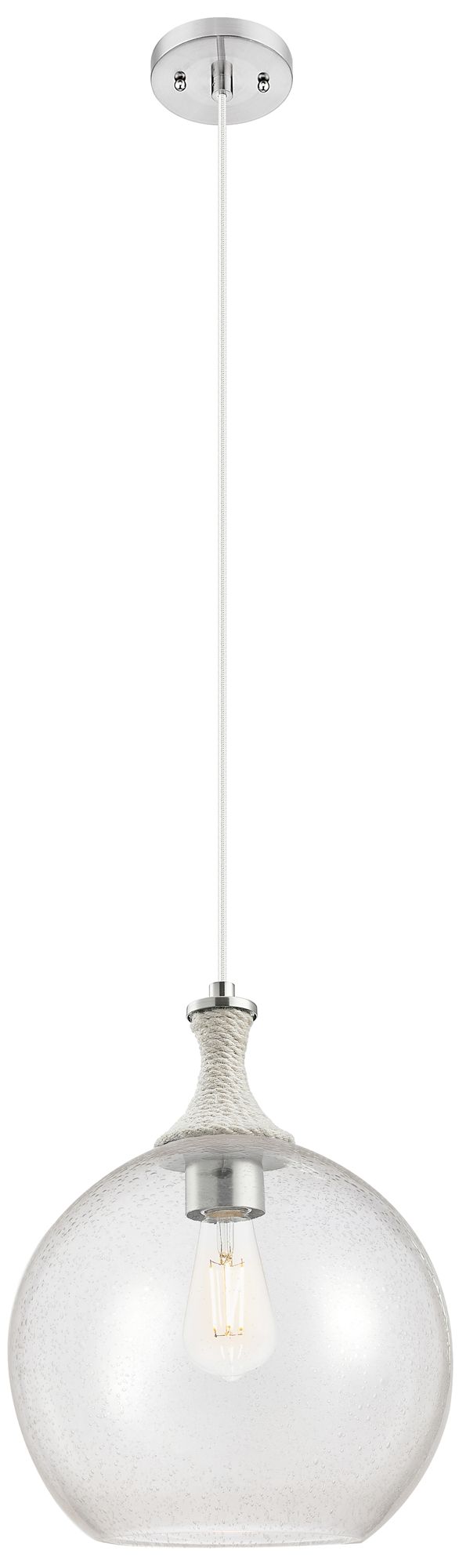 Astor 12"W Satin Nickel And White Rope Cord Mini Pendant w/ Seedy Shade