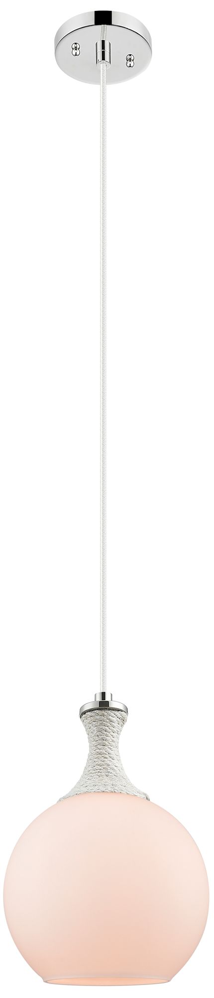 Astor 12"W Satin Nickel And White Rope Stem Mini Pendant w/ White Shade