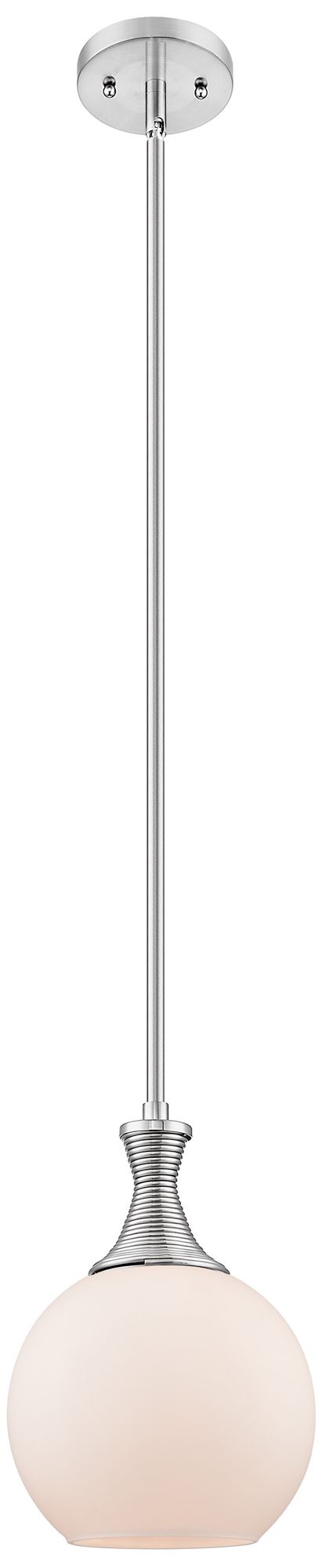 Astor 10"W Satin Nickel Metal Stem Mini Pendant With Matte White Shade