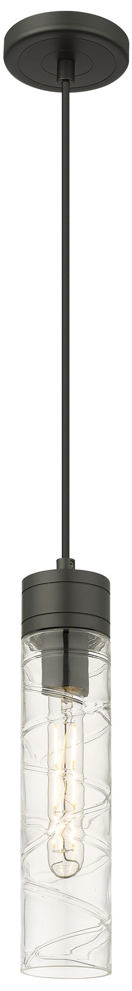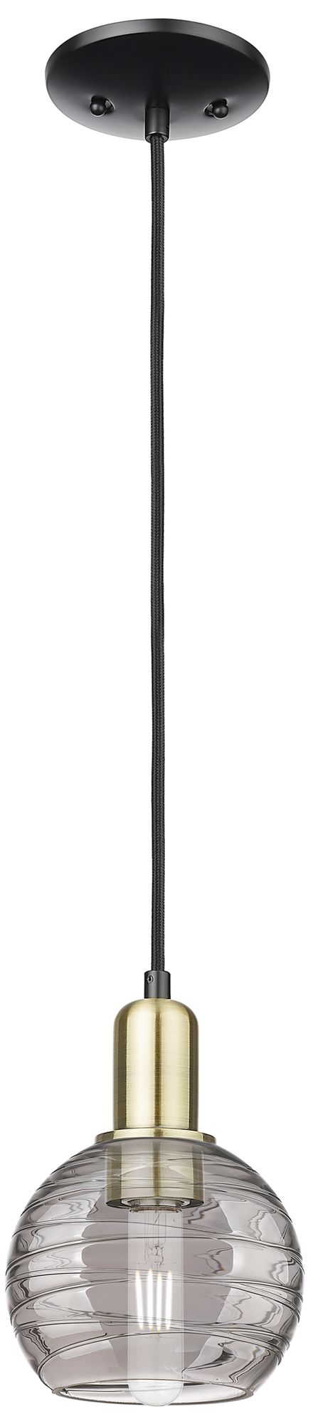 Crown Point Athens Deco Swirl 6"W Black Stem Pendant w/ Smoke Shade