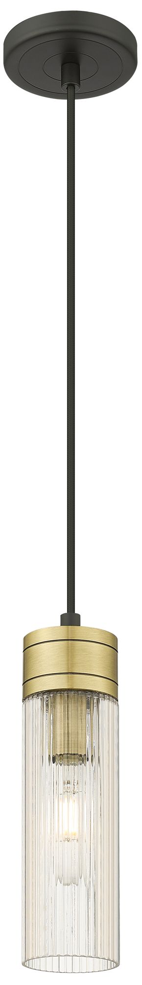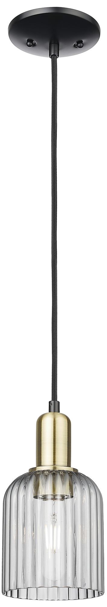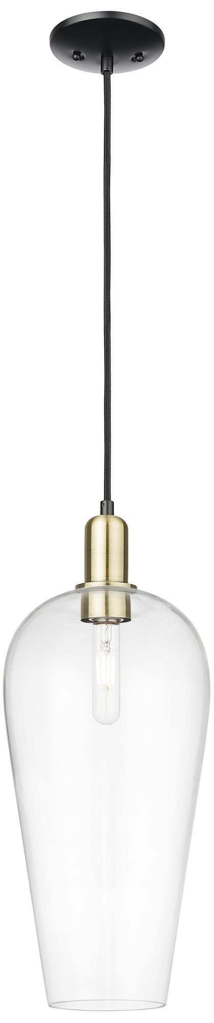Chelsea 8"W Black Antique Brass Cord Hung Mini Pendant With Clear Shade