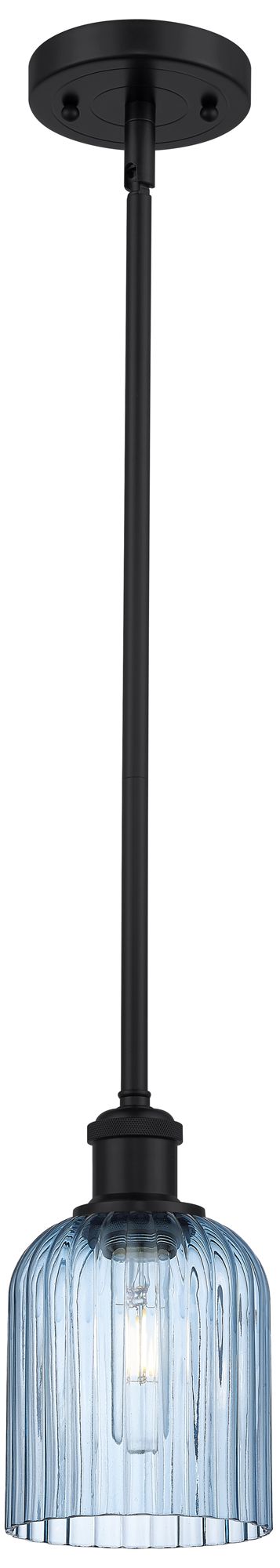 Ballston Vaz 5.88"W Matte Black Stemmed Mini Pendant w/ Princess Blue