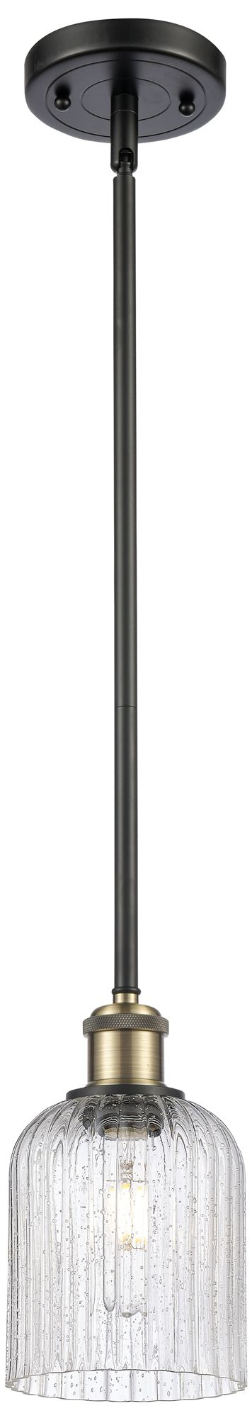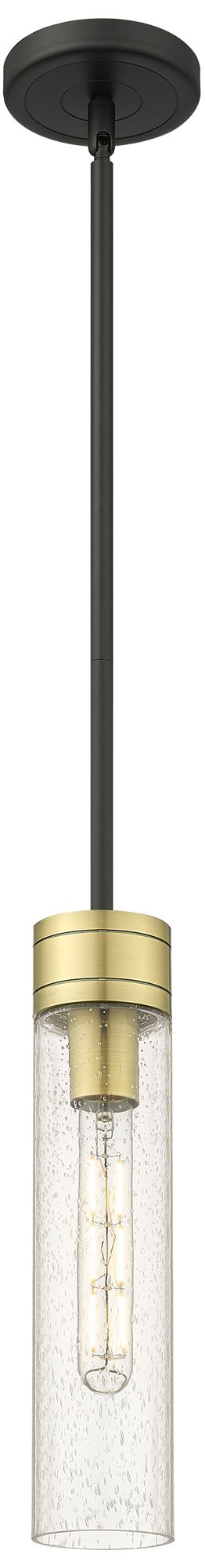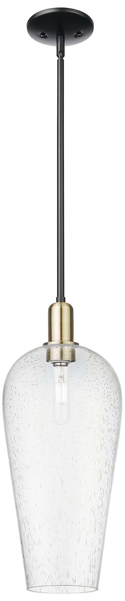 Chelsea 8"W Black Antique Brass Stem Hung Mini Pendant With Seedy Shade