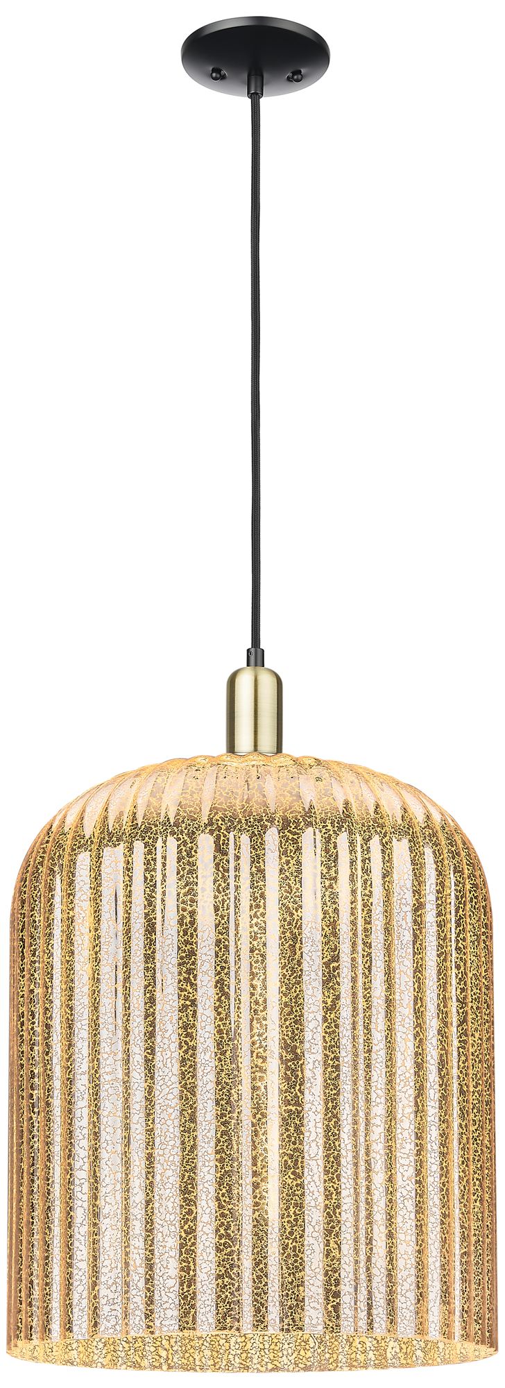 Franklin Bell Cage 9" Black Brass Corded Mini Pendant w/ Mercury Shade