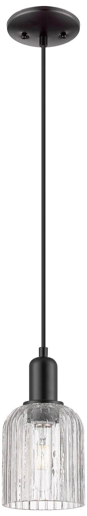 Bridal Veil 5" Wide Matte Black Cord Hung Mini Pendant With Clear Shade
