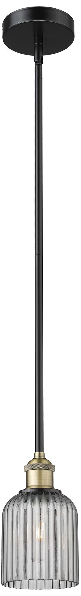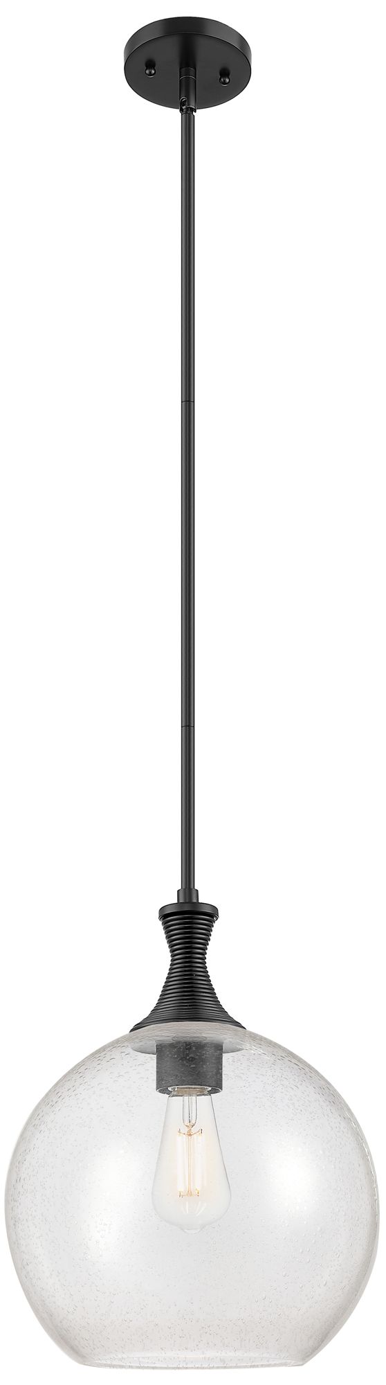 Astor 12"W Matte Black Metal Stem Hung Mini Pendant With Seedy Shade