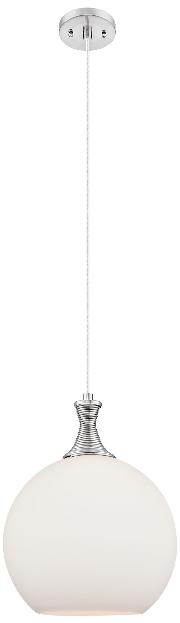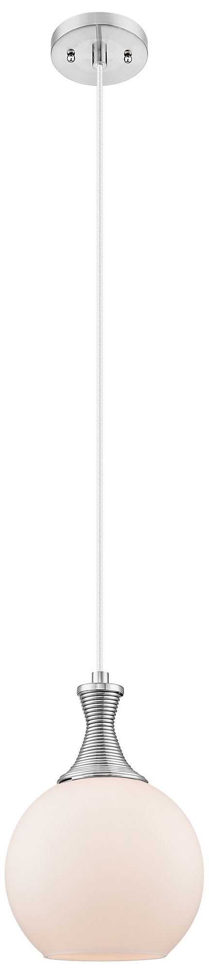 Astor 12"W Satin Nickel Metal Cord Mini Pendant With Matte White Shade