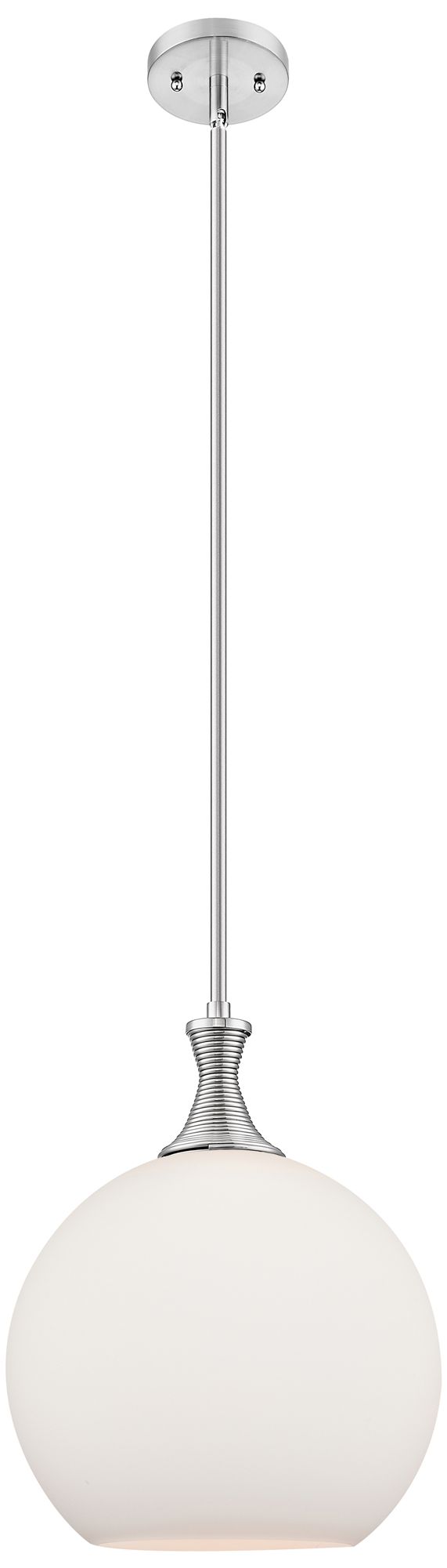 Astor 12"W Satin Nickel Metal Stem Mini Pendant With Matte White Shade