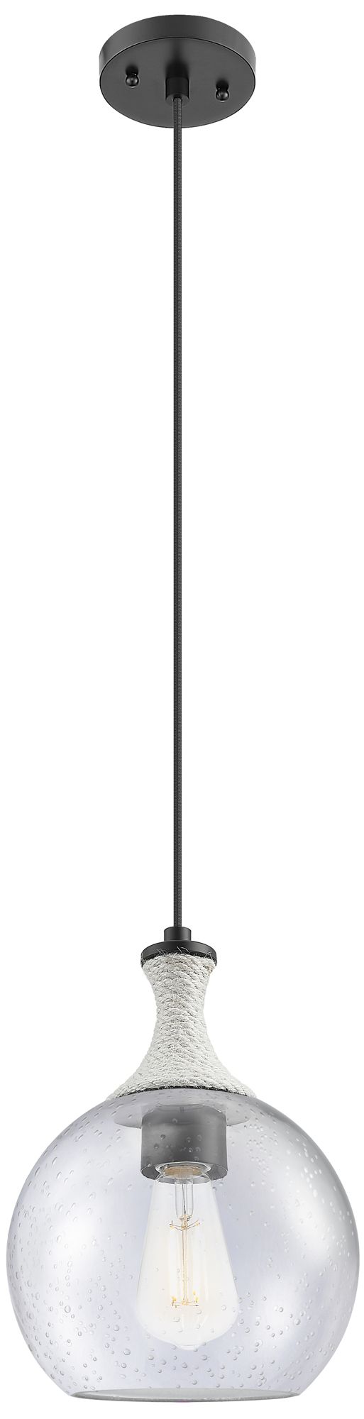 Astor 8"W Matte Black And White Rope Cord Mini Pendant With Seedy Shade