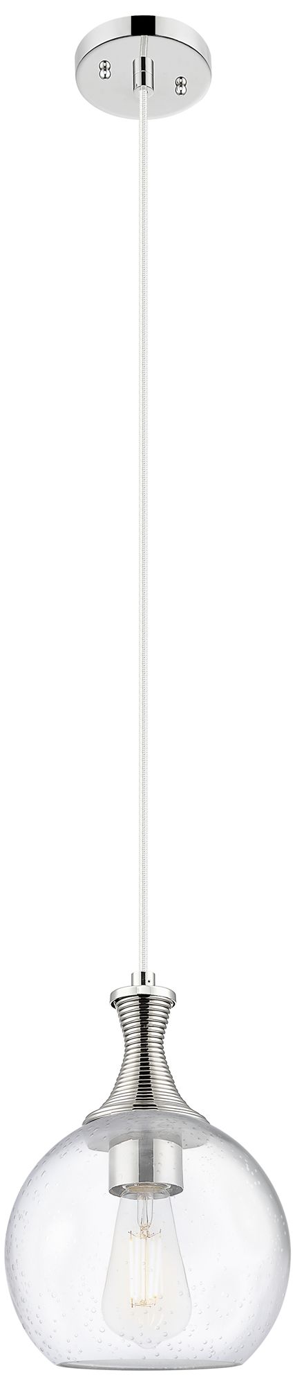 Astor 8"W Polished Nickel Metal Cord Hung Mini Pendant With Seedy Shade