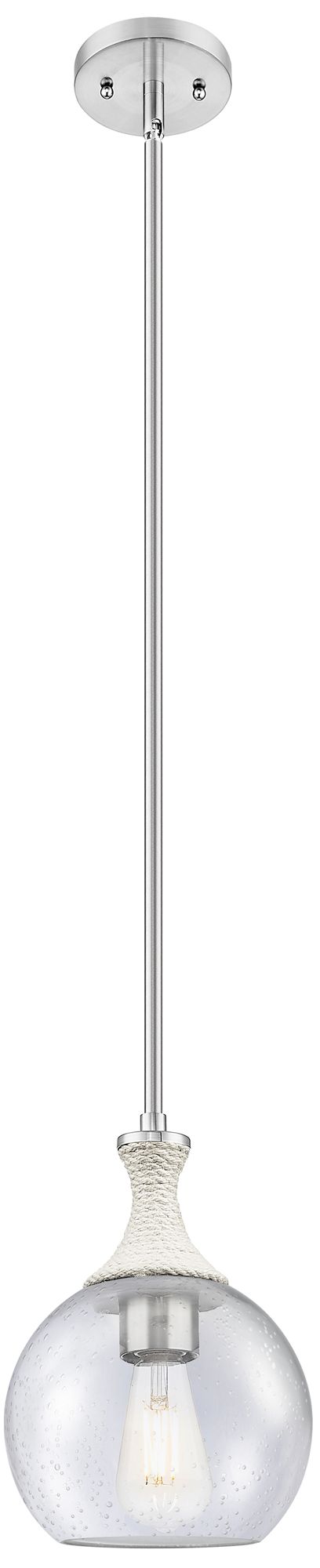 Astor 8"W Satin Nickel And White Rope Stem Mini Pendant w/ Seedy Shade