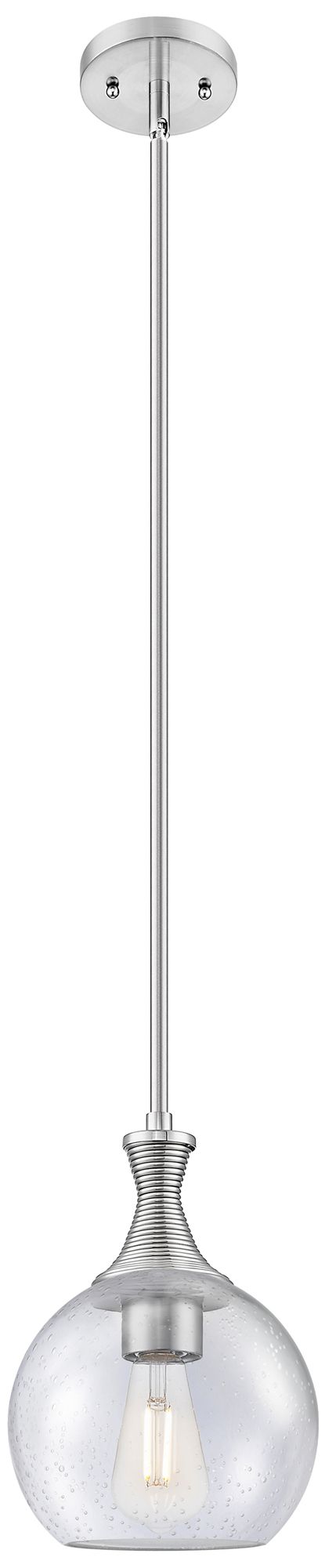 Astor 8"W Satin Nickel Metal Stem Hung Mini Pendant With Seedy Shade
