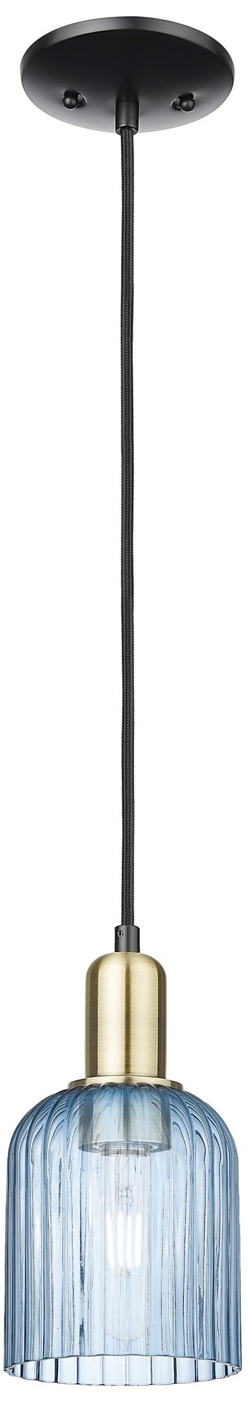 Bridal Veil 5"W Black Antique Brass Cord Mini Pendant With Blue Shade
