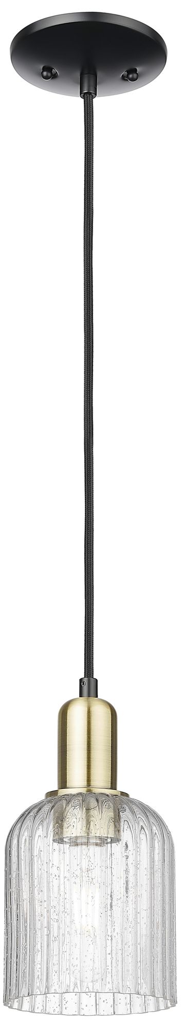 Bridal Veil 5"W Black Antique Brass Cord Mini Pendant With Seedy Shade