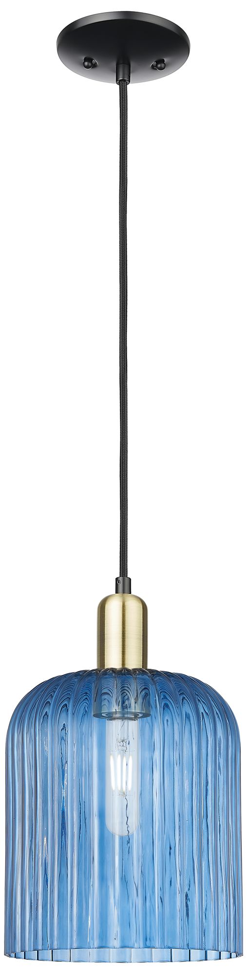 Bridal Veil 8"W Black Antique Brass Cord Mini Pendant With Blue Shade