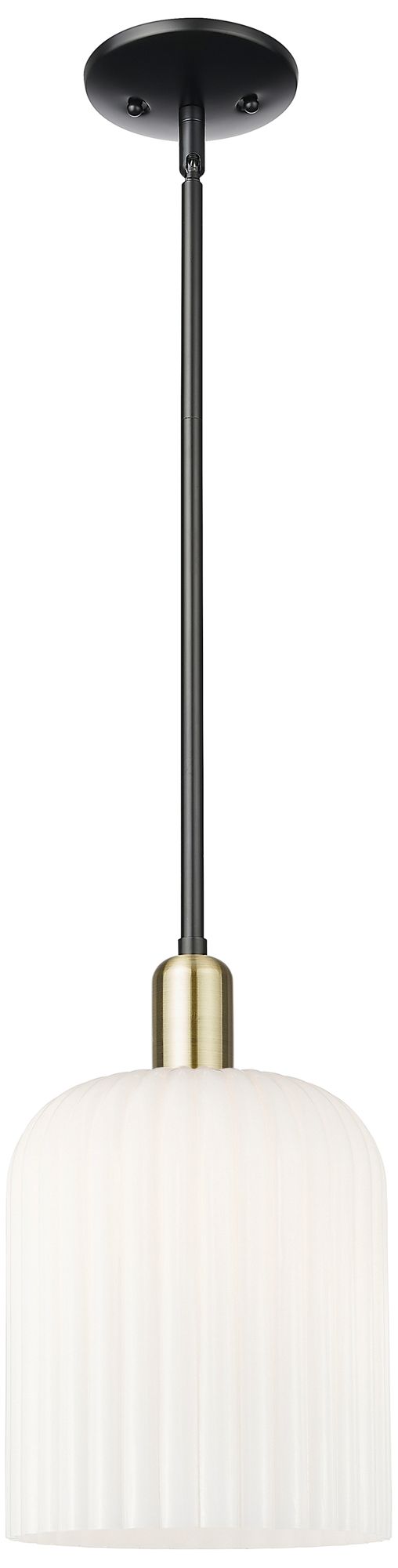Bridal Veil 8"W Black Brass Stem Mini Pendant With Gloss White Shade