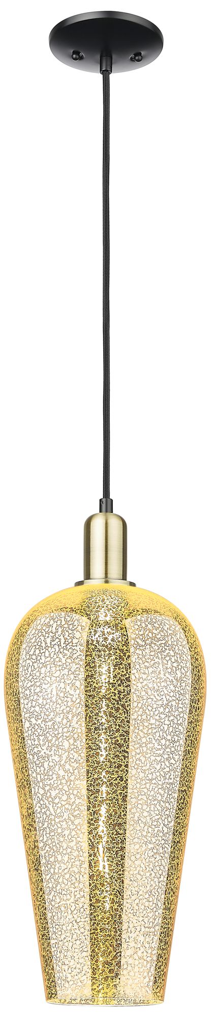 Chelsea 8"W Black Antique Brass Cord Mini Pendant With Mercury Shade