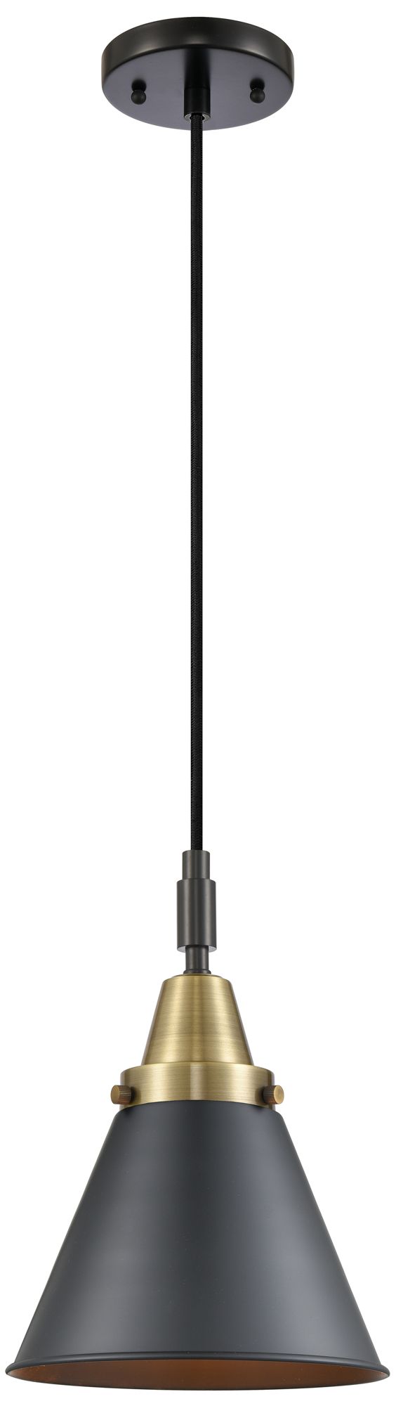 Downtown Caden Appalachian 8"W Cord Black Brass Pendant w/ Black Shade