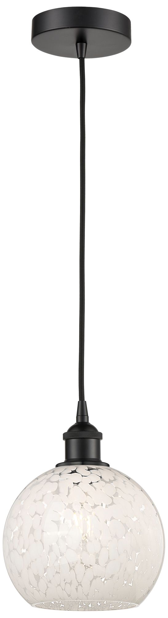 Edison 8" Wide Matte Black Cord Hung Mini Pendant w/ White Mouchette S