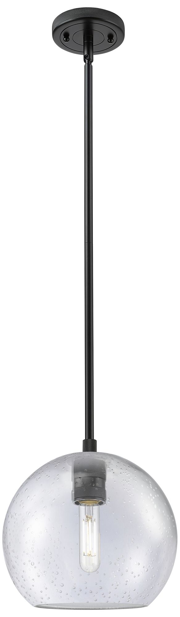 Crown Point Athens 8"W Matte Black Stem Hung Pendant With Seedy Shade