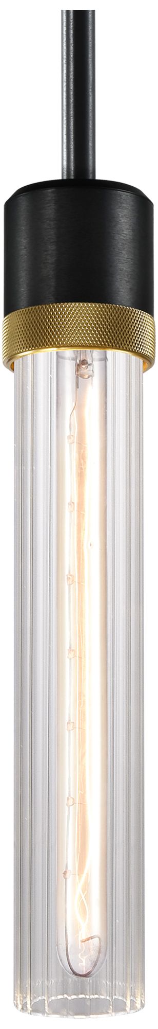 Zigrina 3" E26 Cylindrical Pendant, 18" Clear Glass and Black Fin