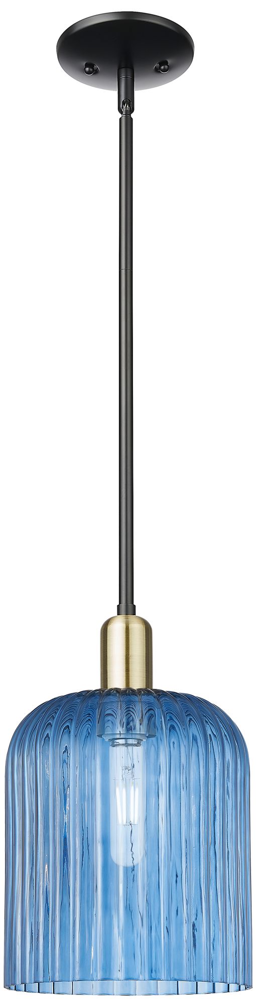 Ballston Vaz 10"W Black Antique Brass Corded Mini Pendant w/ Blue Shad