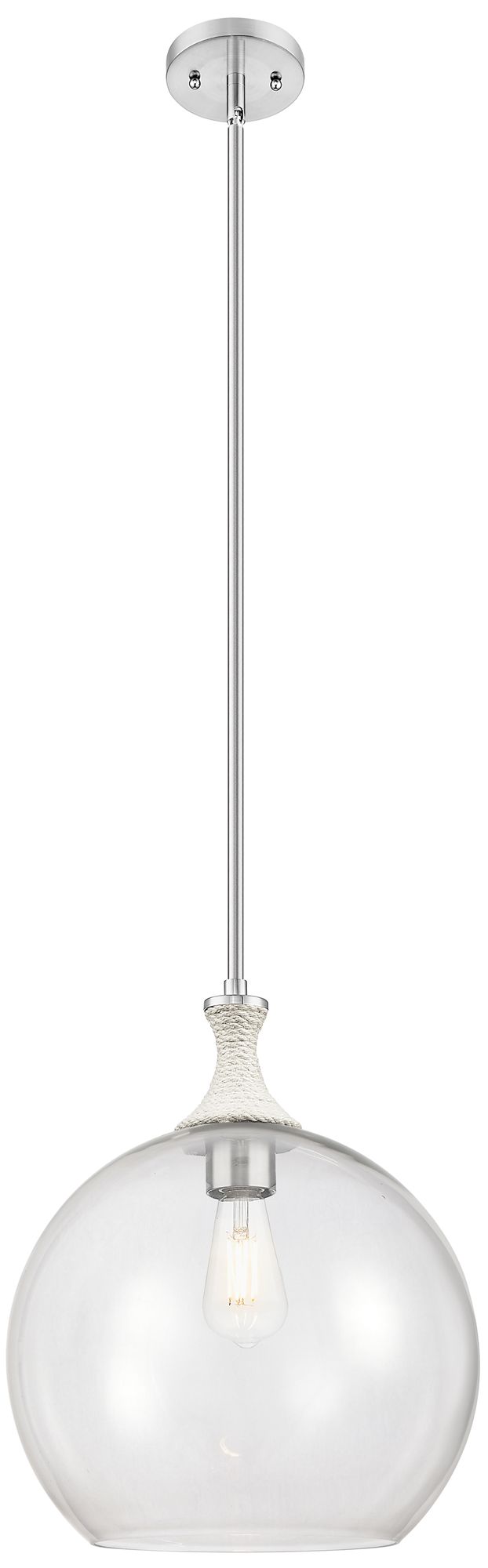 Downtown Astor 14"W White Rope Satin Nickel Pendant w/ Clear Shade