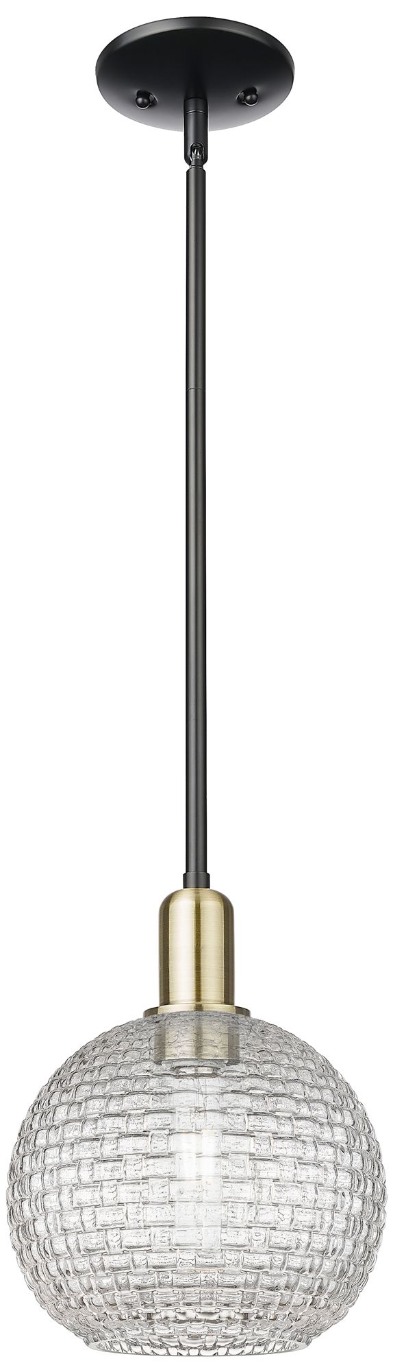 Arcadia Athens 8"W Black Brass Stem Pendant w/ Basketweave Shade