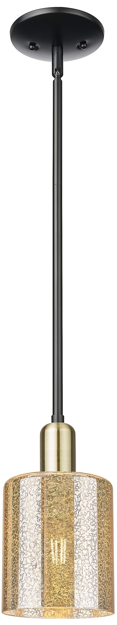 Arcadia Cobbleskill 5"W Black Brass Stem Mini Pendant w/ Mercury Shade