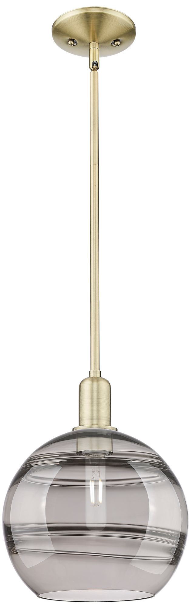 Arcadia Rochester 10"W Brass Stem Mini Pendant w/ Light Smoke Shade