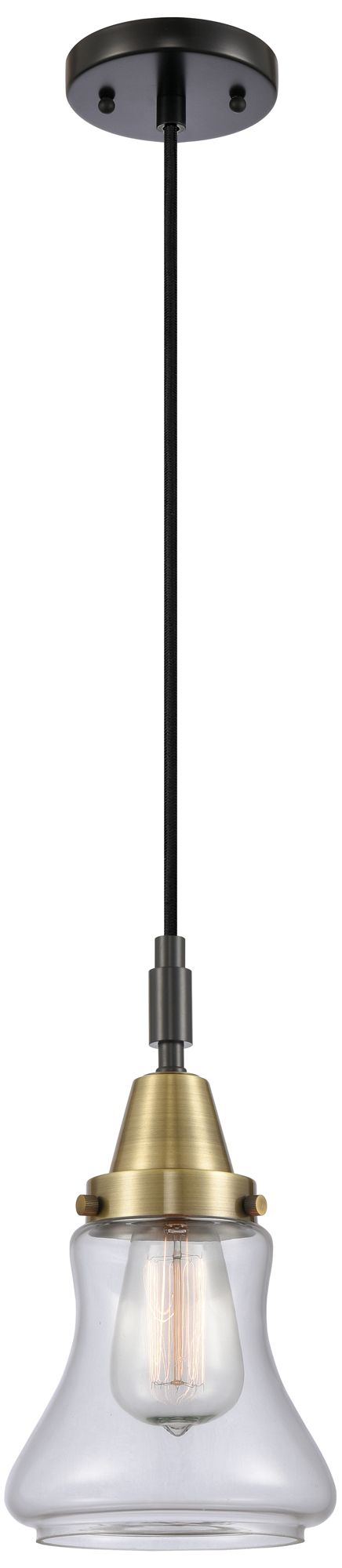 Downtown Caden Bellmont 7"W Cord Black Brass Pendant w/ Clear Shade
