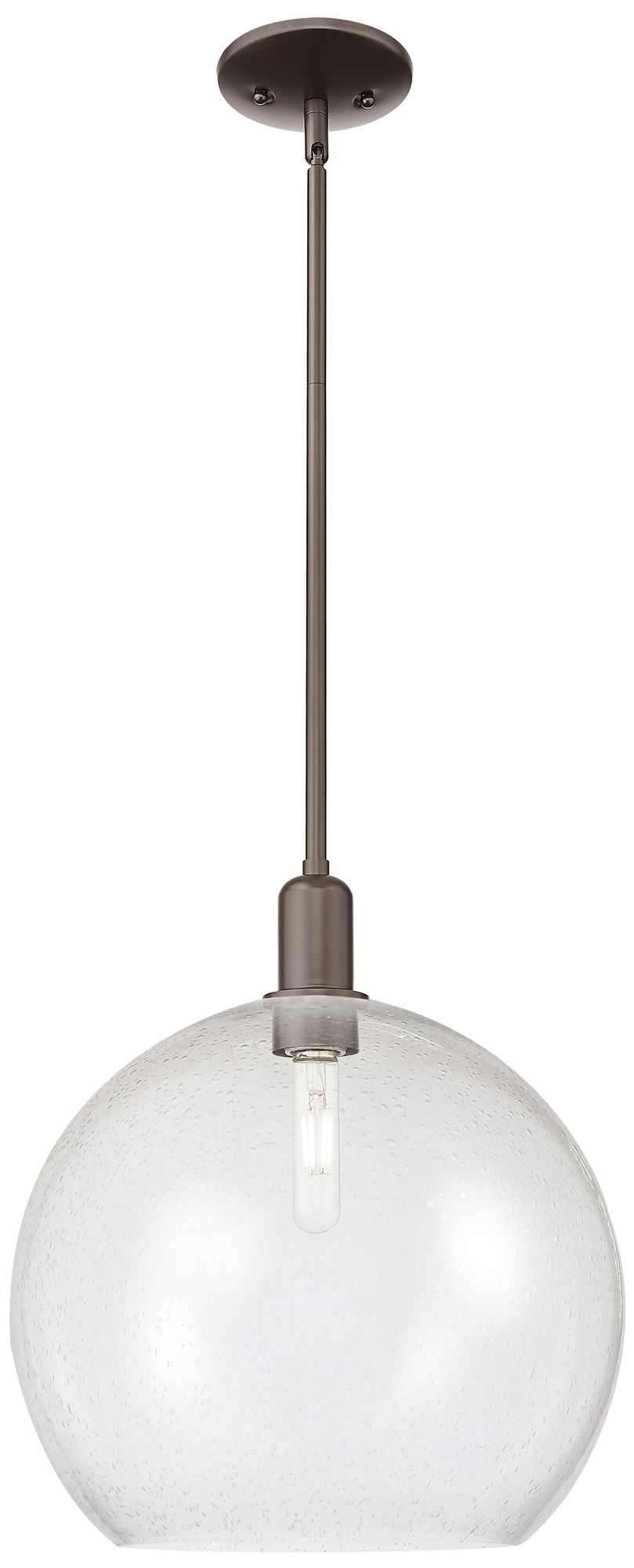 Arcadia Athens 14"W Oiled Bronze Stem Hung Mini Pendant w/ Seedy Shade
