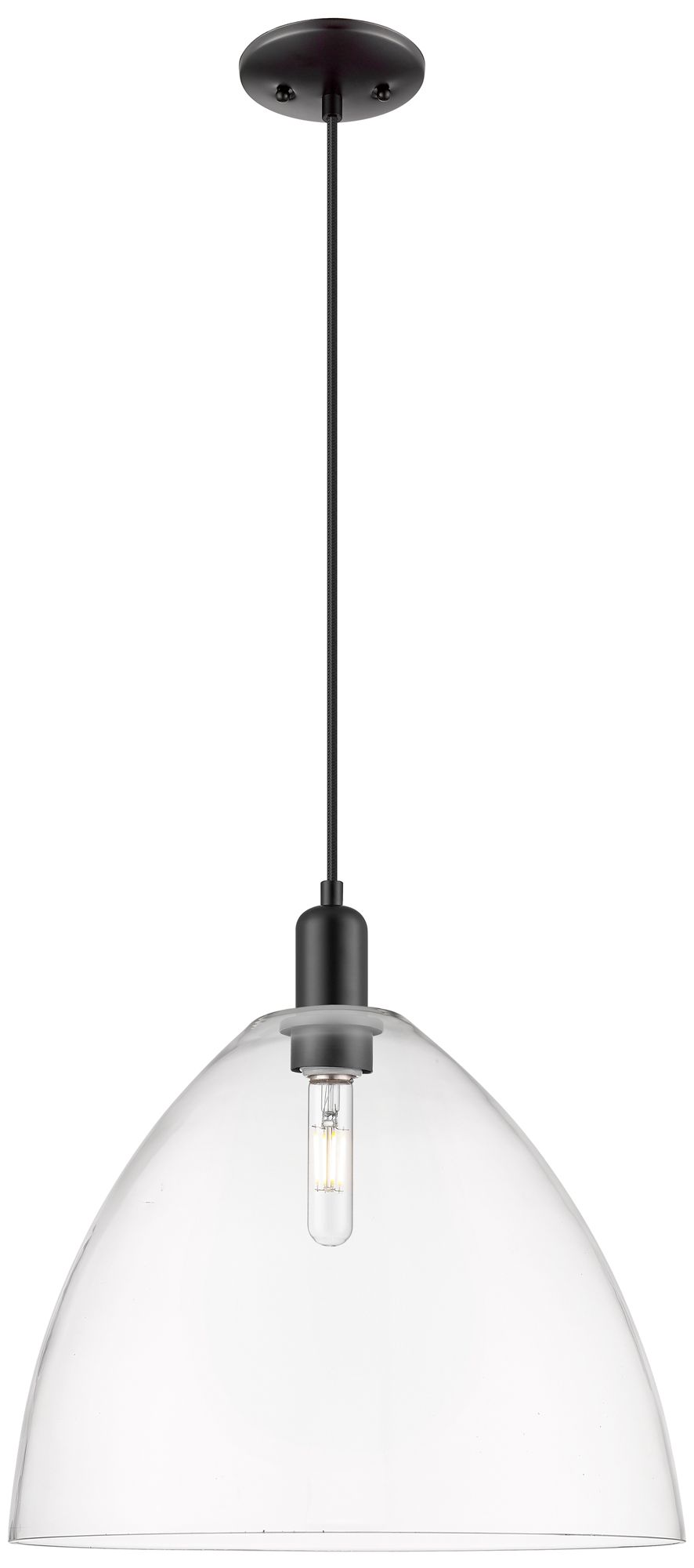 Arcadia Bristol 16"W Matte Black Cord Hung Mini Pendant w/ Clear Shade