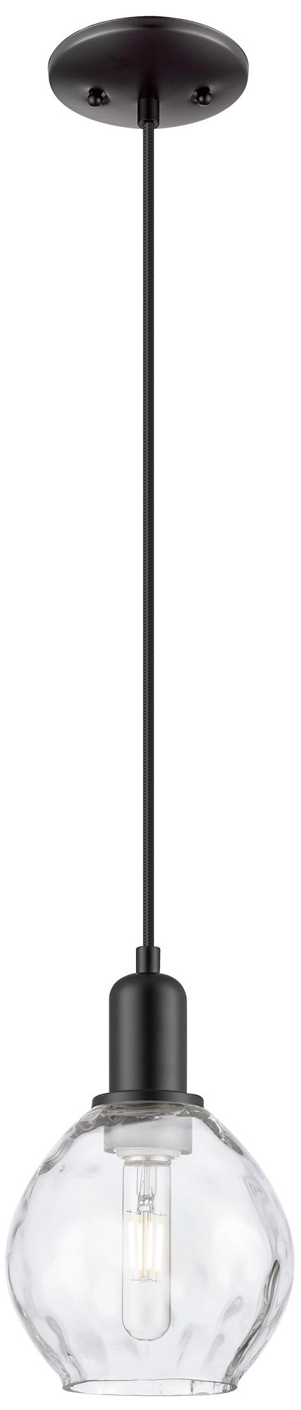 Arcadia Waverly 6"W Matte Black Cord Hung Mini Pendant w/ Clear Shade