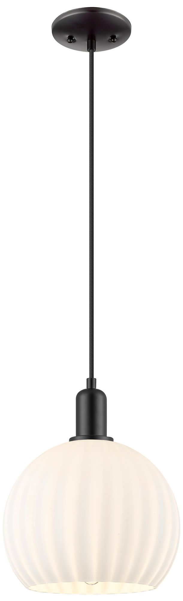 Arcadia White Venetian 10" Wide Matte Black Cord Hung Mini Pendant
