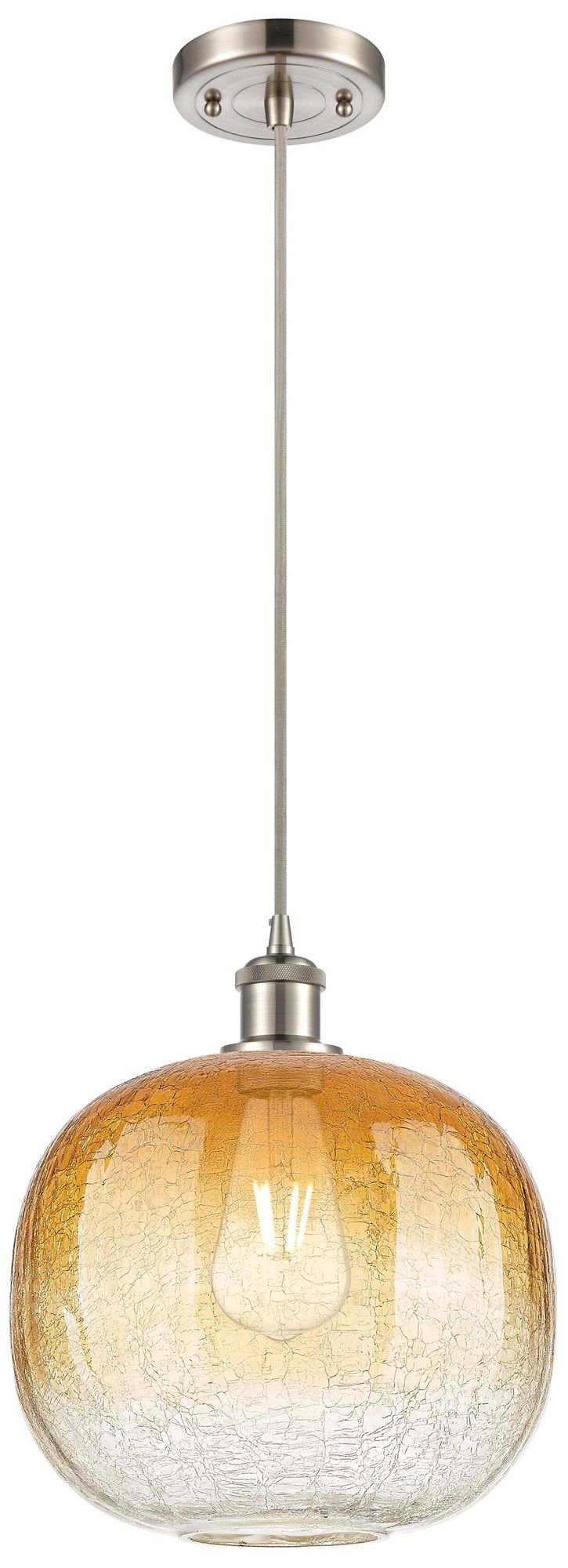 Ballston Brookhaven Sphere 11"W Nickel Cord Pendant w/ Amber Shade