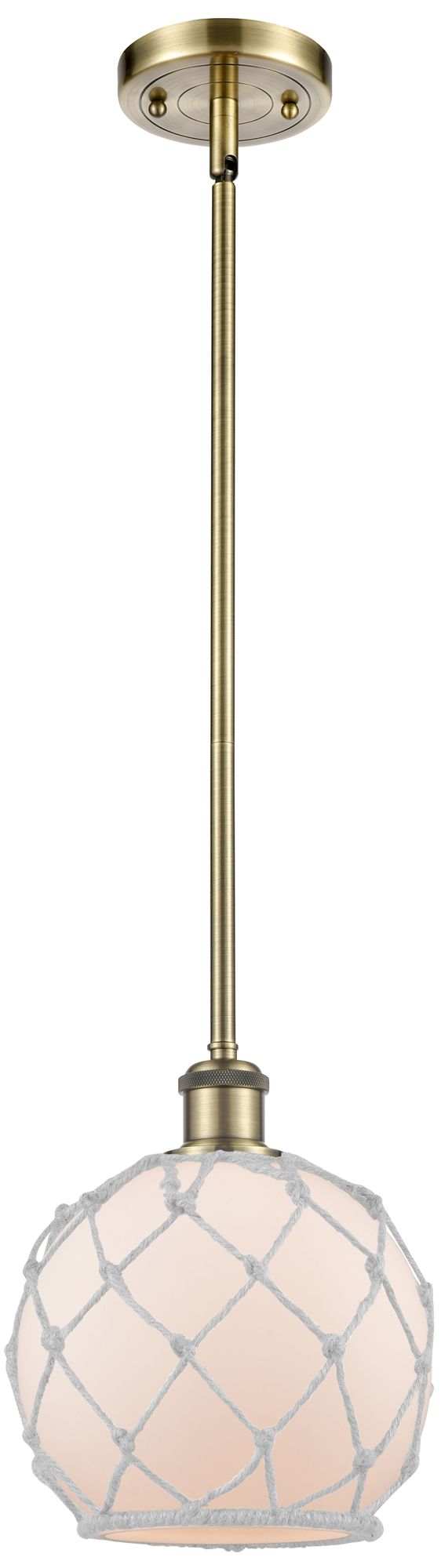 Ballston Farmhouse Rope 8"W Brass Stem Pendant w/ White Glass Shade