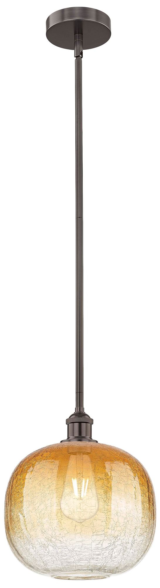 Edison Brookhaven Sphere 11"W Oiled Bronze Stem Pendant w/ Amber Shade