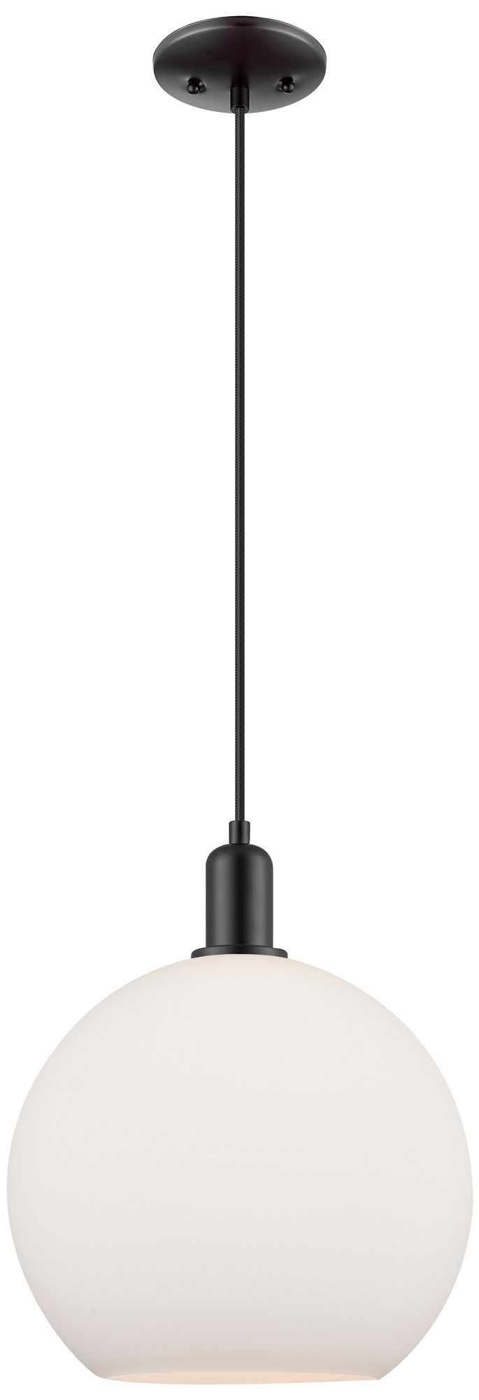 Arcadia Athens 12"W Black Cord Hung Mini Pendant w/ Matte White Shade