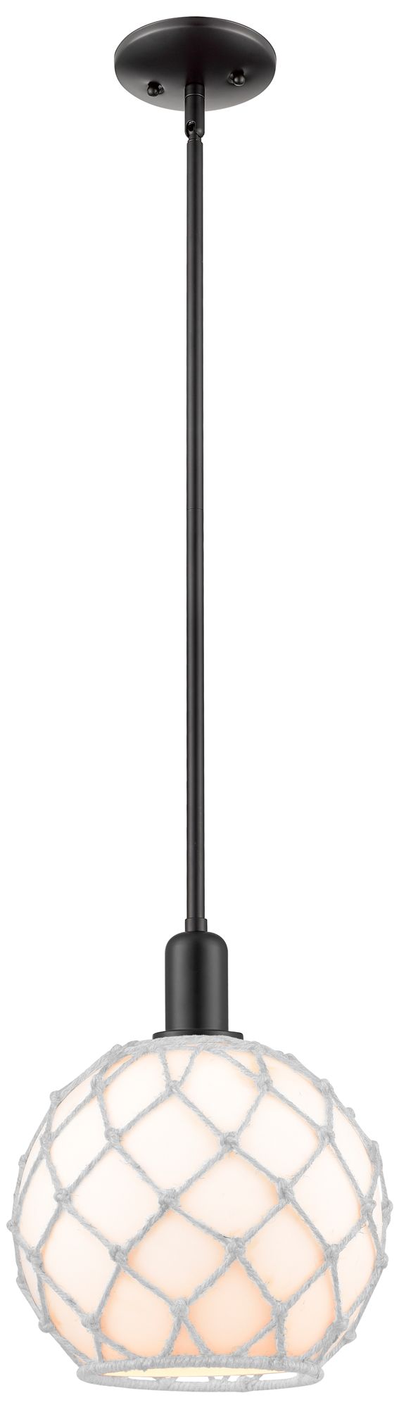 Arcadia Farmhouse Rope 10"W Black Stem Pendant w/ White Glass Shade