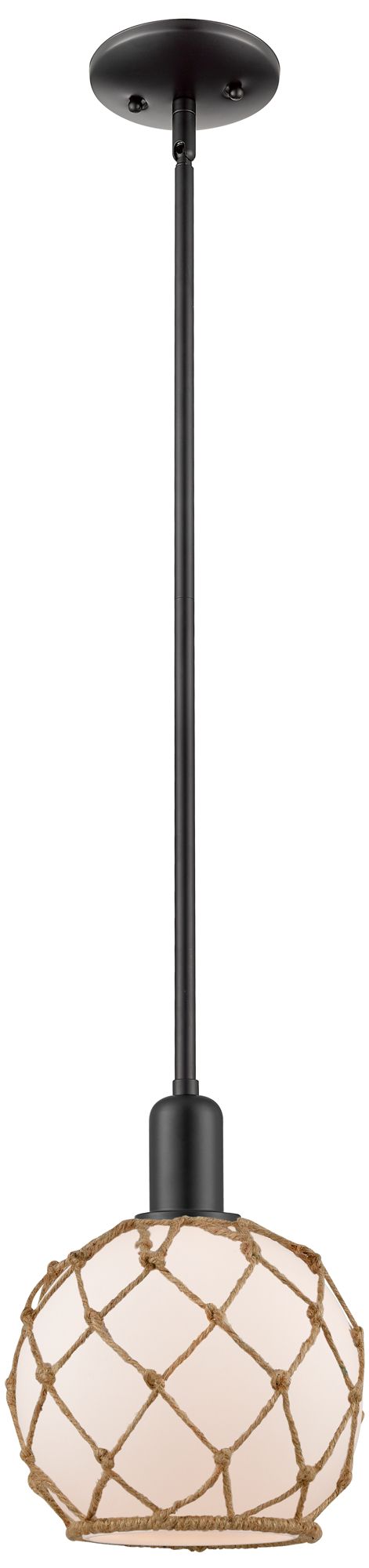 Arcadia Farmhouse Rope 8"W Black Stem Pendant w/ White Brown Shade