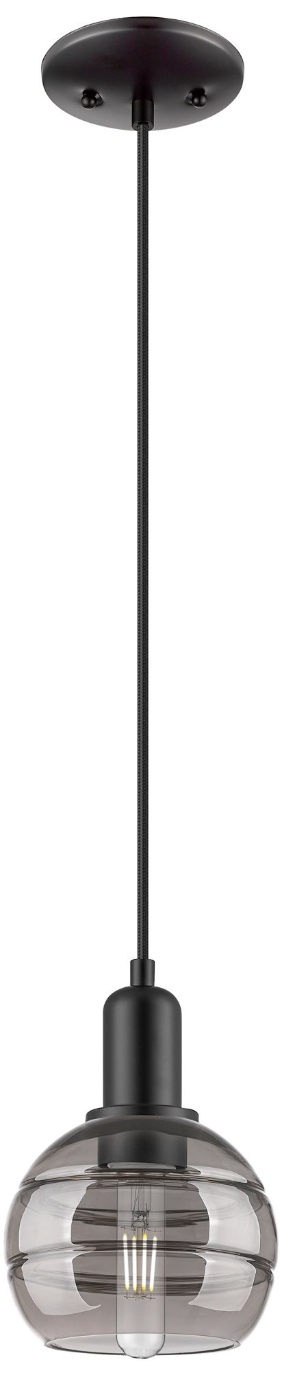 Arcadia Rochester 6"W Black Cord Mini Pendant w/ Light Smoke Shade