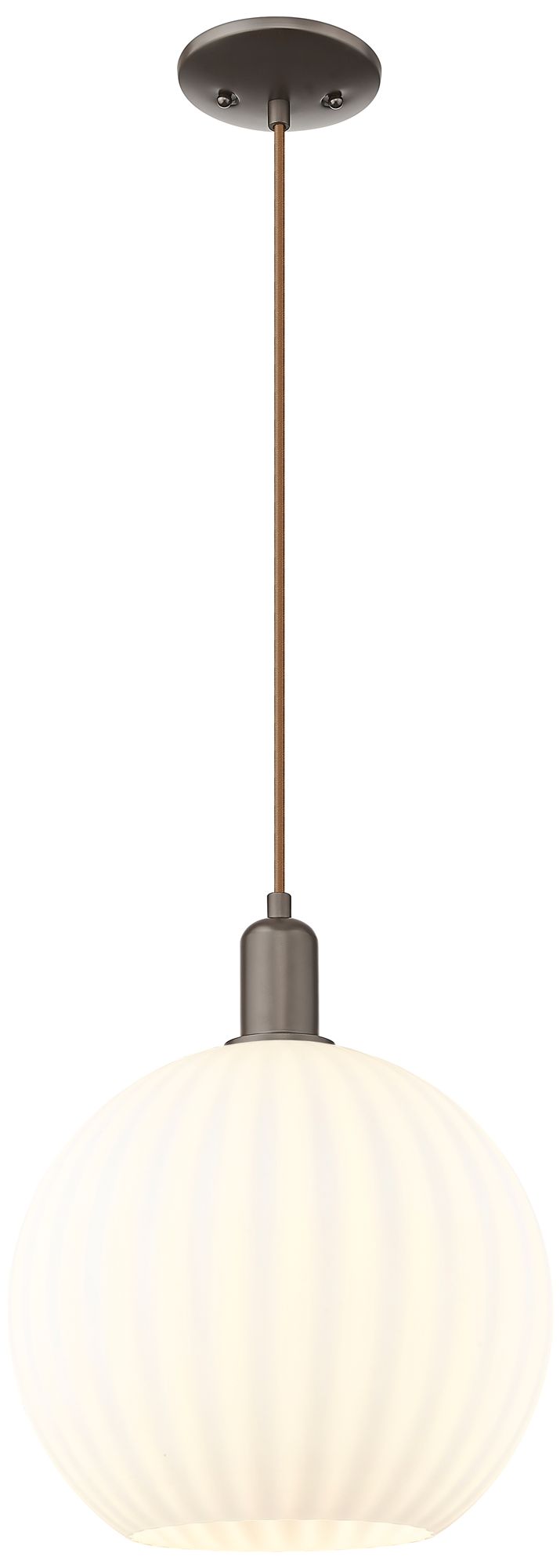 Arcadia White Venetian 12"W Oil Rubbed Bronze Cord Hung Mini Pendant