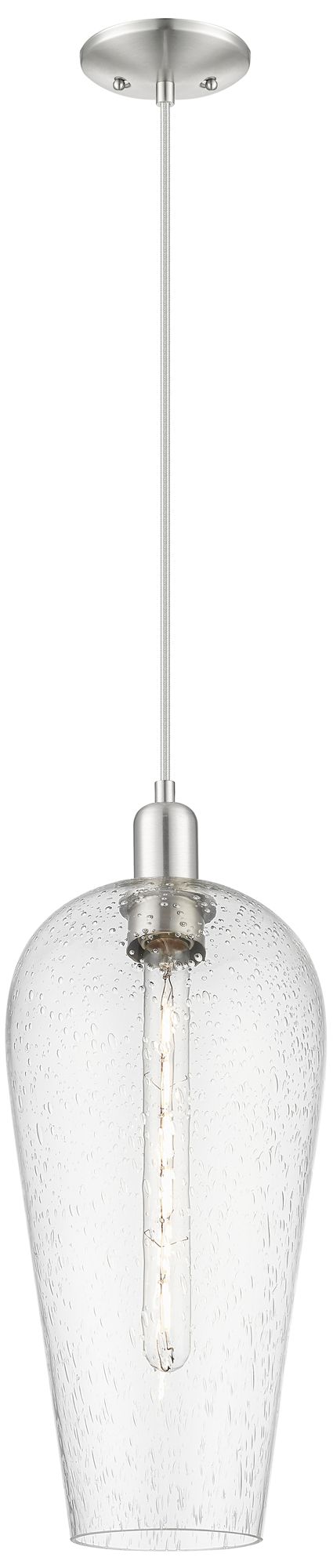 Downtown Chelsea 8"W Cord Satin Nickel Mini Pendant w/ Seedy Shade