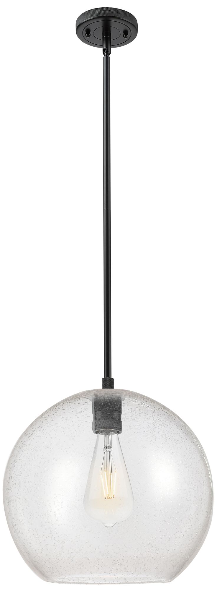 Beacon 12" Wide Black Brass Corded Mini Pendant With Seedy Shade
