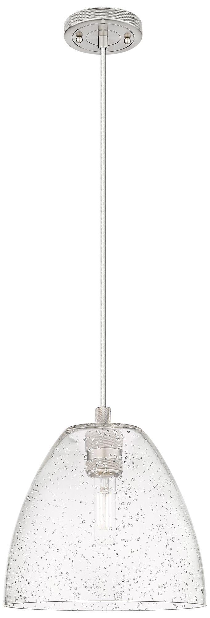 Crown Point Bristol 9"W Polished Nickel Stem Pendant With Seedy Shade