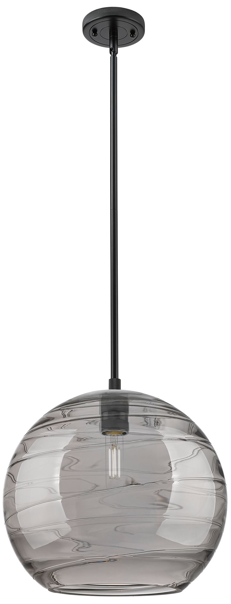 Crown Point Athens Deco Swirl 12"W Black Stem Pendant w/ Smoke Shade