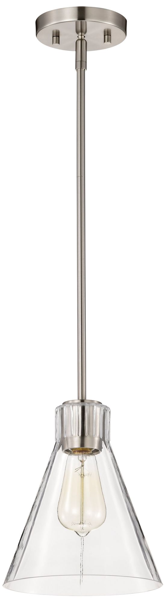 Crown Point Bristol 9"W Satin Nickel Stem Hung Pendant With Clear Shade