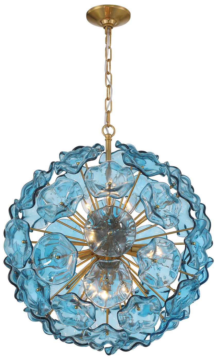 Esme 22 1/2"W Brass and Blue Glass 9-Light Sputnik Pendant